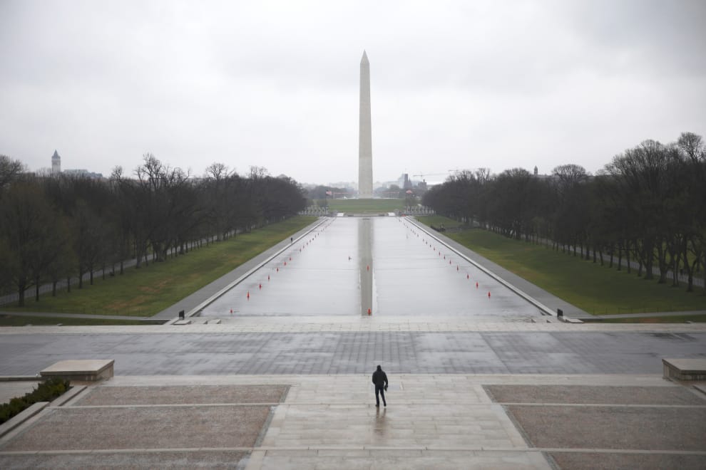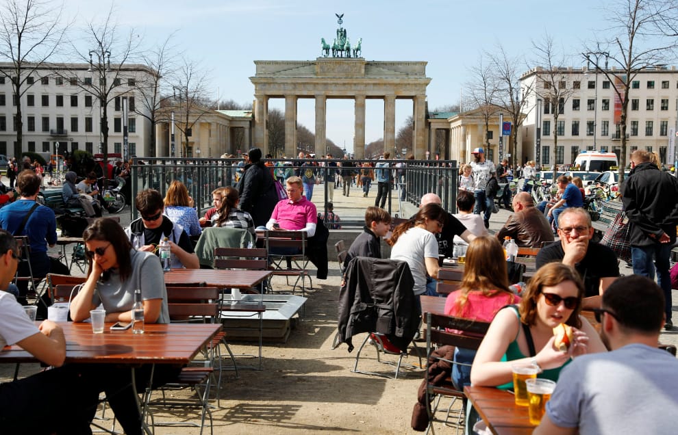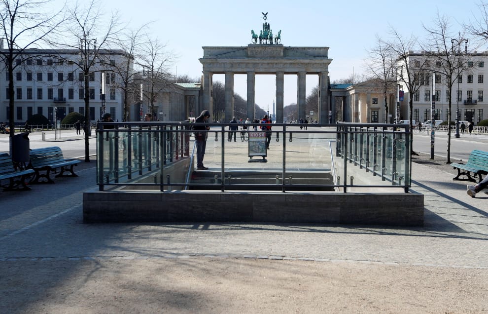 路透社 / 達志影像作為知名景點的德國布蘭登堡門(Brandenburger Tor)前,也因為疫情的關係少了許多出來享受陽光的人潮。