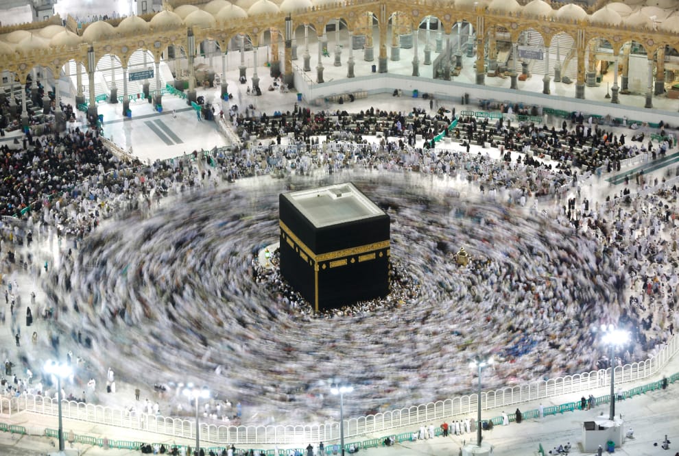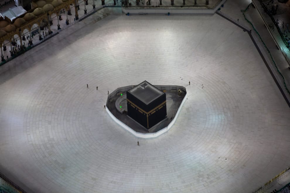 沙烏地阿拉伯「聖城」麥加大清真寺內的卡巴天房。沙國出於防疫考量,早早就宣布暫停朝聖者進入大清真寺,希望朝聖者以健康為重,COVID-19(武漢肺炎)防疫期間暫時待在家中。
