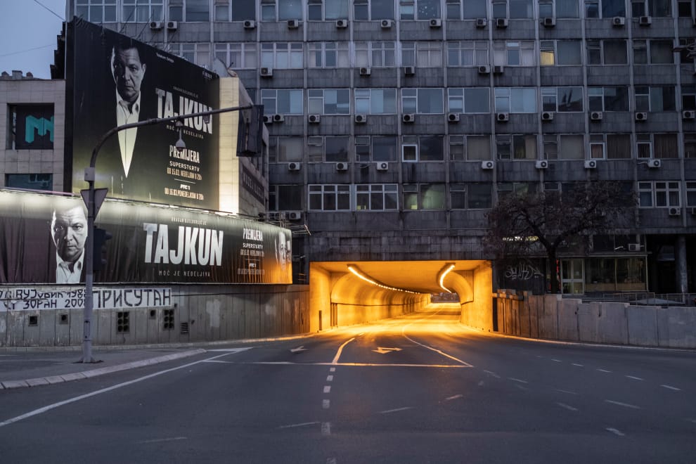 塞爾維亞首都貝爾格萊德(Belgrade)的一座隧道,在塞國政府下令封城後,街道完全淨空。