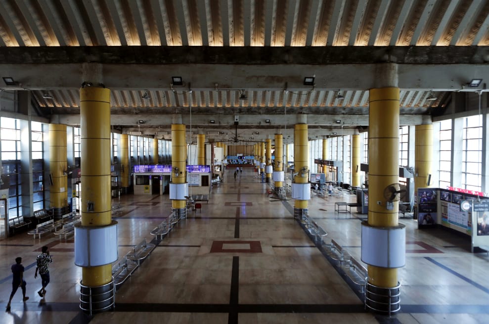 印度孟買的一處火車站大廳,在印度總理莫迪(Naranda Modi)宣布全境封鎖後,車站大廳一片空蕩蕩。