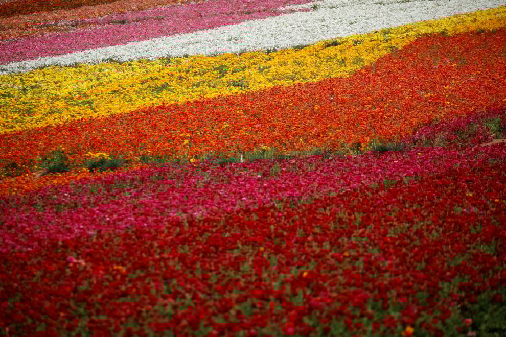 在加州卡爾斯巴德市(Carlsbad),原本應該人滿為患的觀光花田,現在因為加州政府下令民眾沒必要不要外出的關係,一個觀光客都沒有。