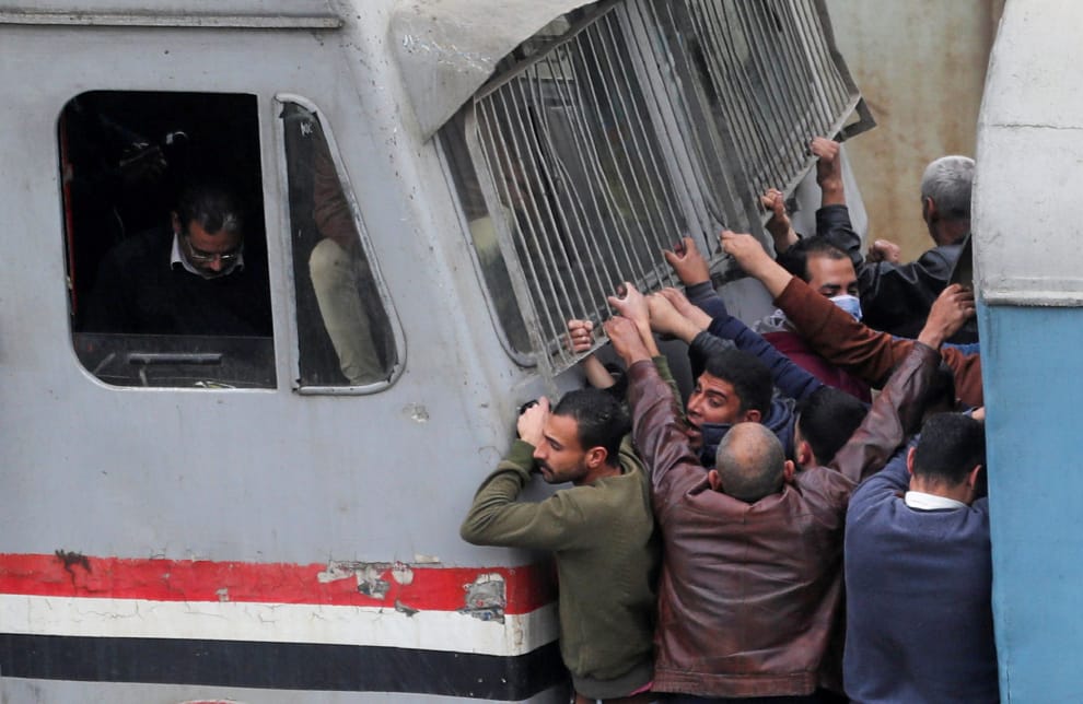 在首都開羅,人們拼命擠上火車,趕著在宵禁前回家。隨著疫情蔓延,埃及政府宣佈實施宵禁,下令民眾時間到只能待在家。