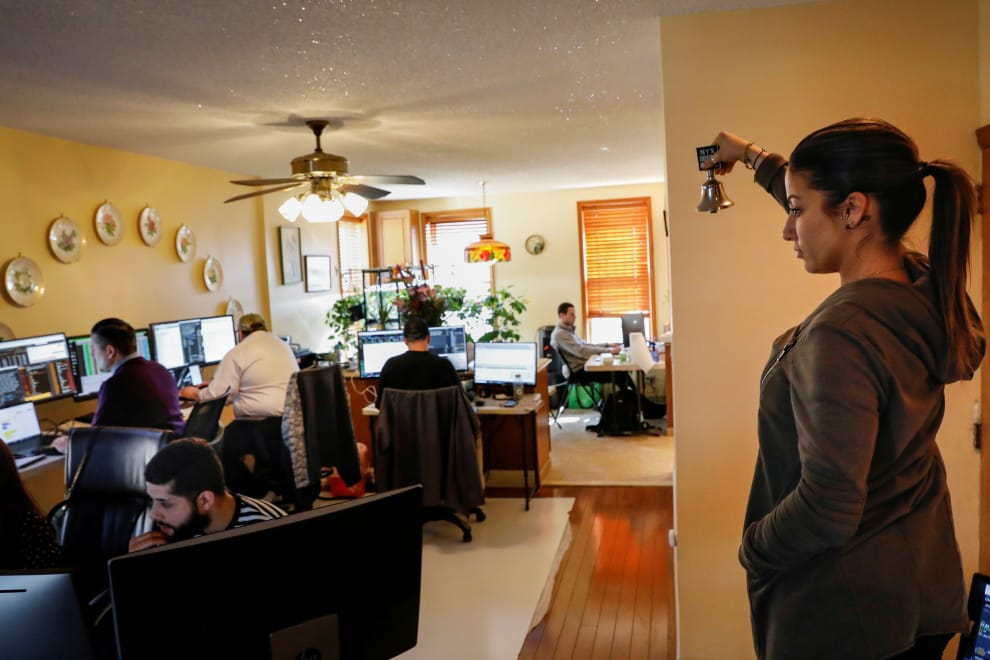 在紐約市的布魯克林區,茱麗葉(Juliette)搖著鈴鐺,提醒正在工作的交易員們交易準備結束了。隨著紐約證券交易所因為疫情的關係而關閉,交易員們也暫時移到不同辦公室工作,離開他們熟悉的地方。