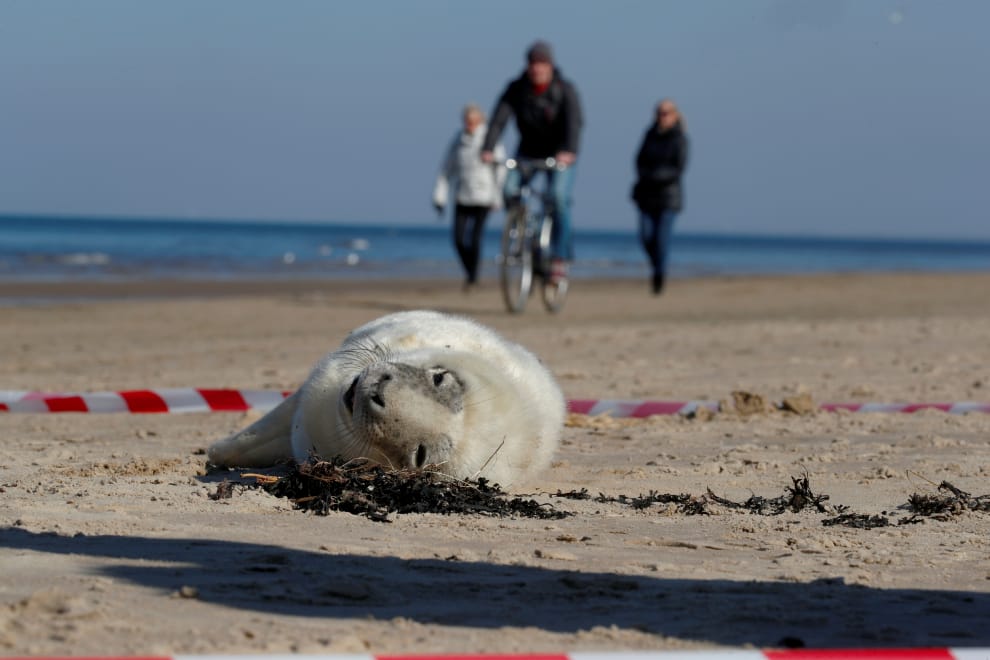在緊鄰里加灣的尤爾馬拉(Jūrmala,拉脫維亞語意為海灘),一隻小海豹正在海灘上作日光浴。