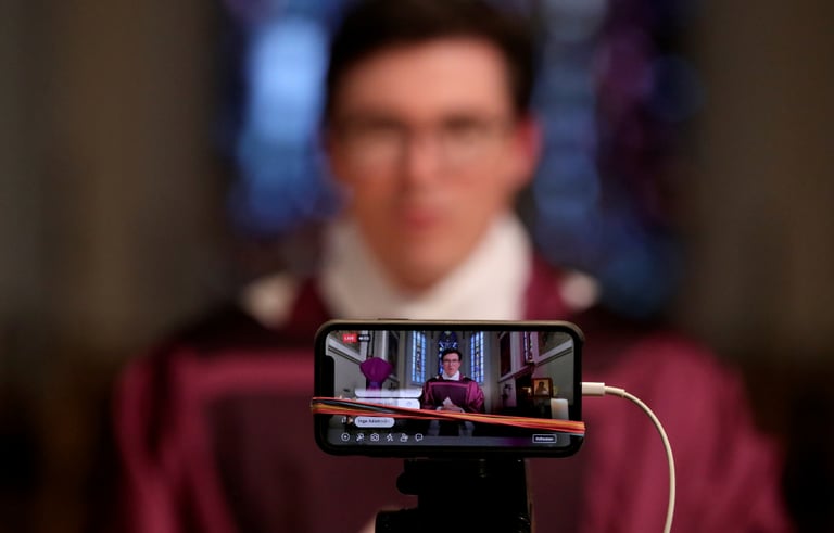 在比利時的赫爾克德斯塔德市(Herk-de-Stad),神父西蒙斯(Wim Wimons)透過Facebook直播彌撒,讓信徒們不必出門就能一同參與。