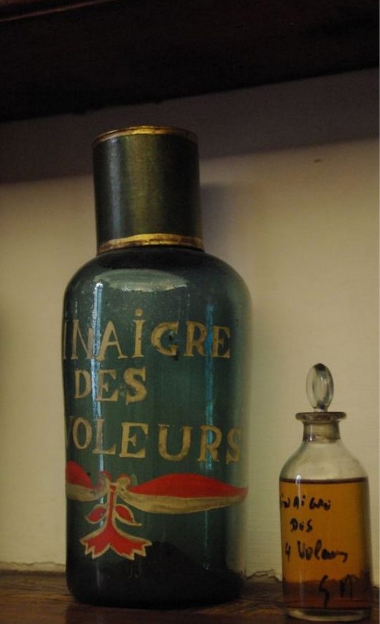 當時,無論貧富貴賤都躲不過黑死病的傳染。然而,民間相傳有個可以免於黑死病感染的方法,它就是「四賊醋」(four thieves vinegar)。
