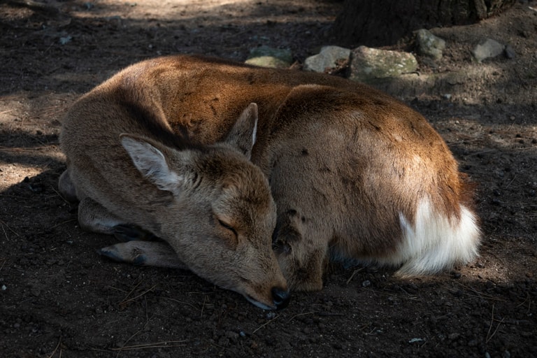 通常,大部分的奈良小鹿都會待在寺廟附近的公園內,等著觀光客們買鹿仙貝來「孝敬」牠們,但現在牠們卻遲遲等不到鹿仙貝。