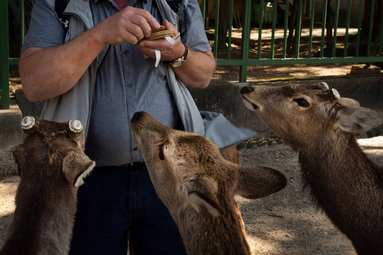 偶爾看到帶著鹿仙貝而來的人,奈良小鹿們會一擁而上,非得等人兩手一攤、宣布身上已經沒有鹿仙貝後,才會依依不捨地鳥獸散。