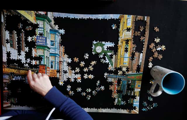 在西北部的曼徹斯特(Manchester),一名居家隔離的女子正在享受寧靜的拼圖時光。