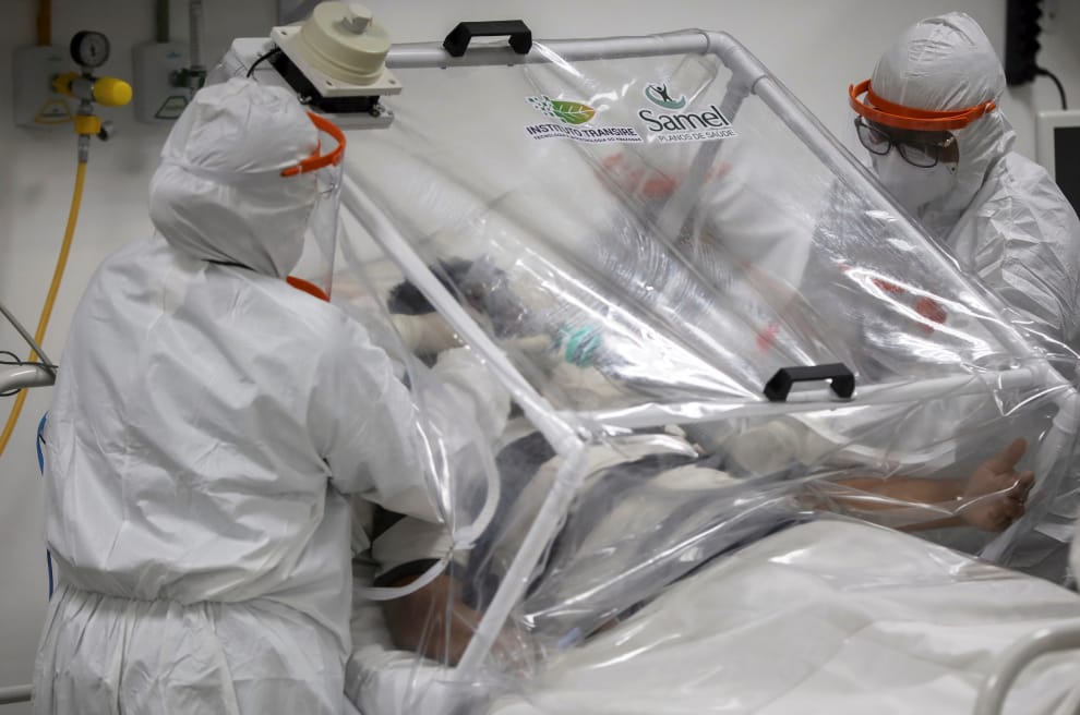 在亞馬遜州的首府瑪瑙斯市(Manaus),醫護人員在野戰醫院的加護病房中照料罹患COVID-19(武漢肺炎)的病患。