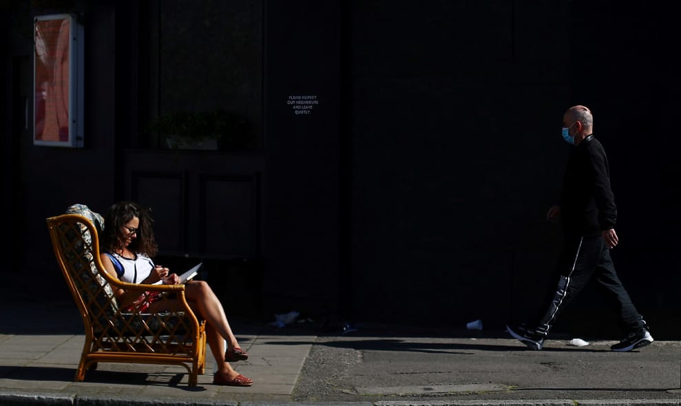 在倫敦達爾斯頓區(Dalston),一名女子坐在外頭一邊享受陽光,一邊看書。