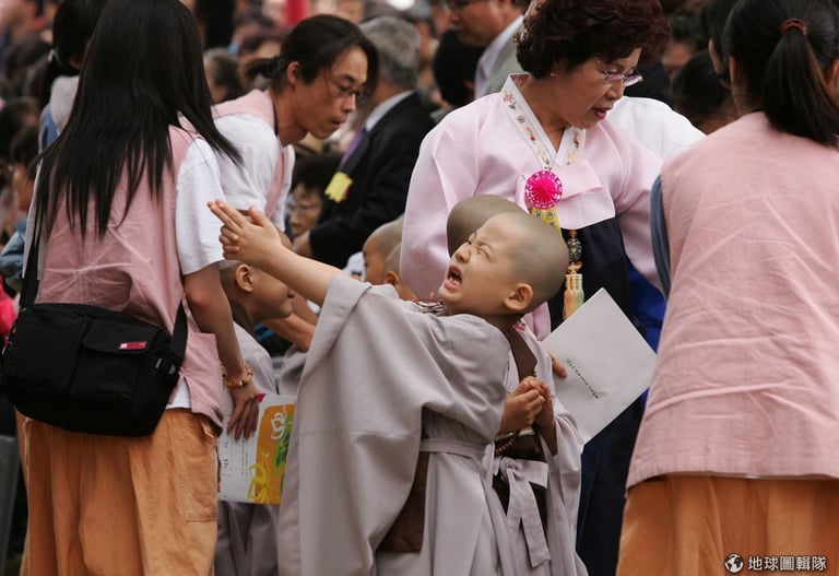 當然也有忍不住嚎啕大哭的小和尚。圖片來源:Chung Sung-Jun/Getty Images