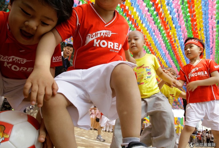 世界盃足球賽快到的時候,小和尚體驗營也跟隨潮流的舉辦小和尚足球比賽!圖片來源:Chung Sung-Jun/Getty Images