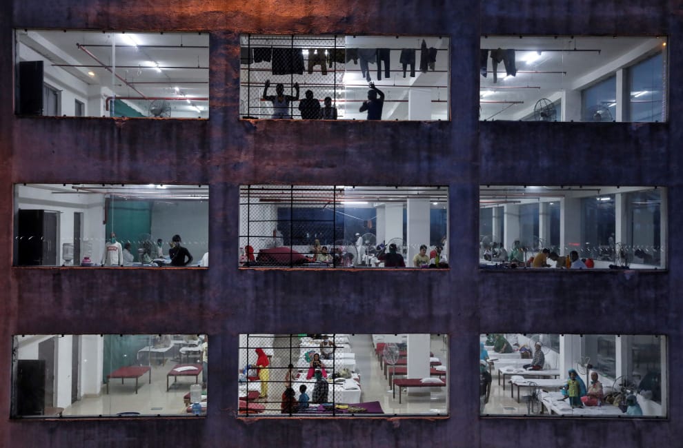 在加爾各答,可以看到在暗夜中的臨時隔離中心裡,民眾的日常生活一覽無遺。