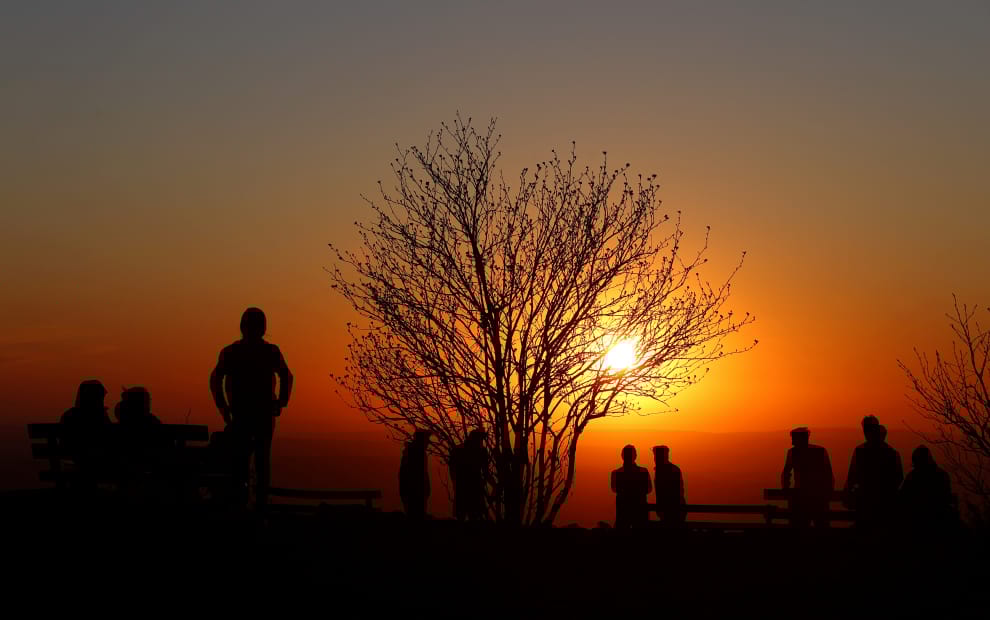 在靠近法蘭克福、屬於黑森林的菲爾德山(Feldberg),人們到此呼吸新鮮空氣,順便欣賞夕陽美景。