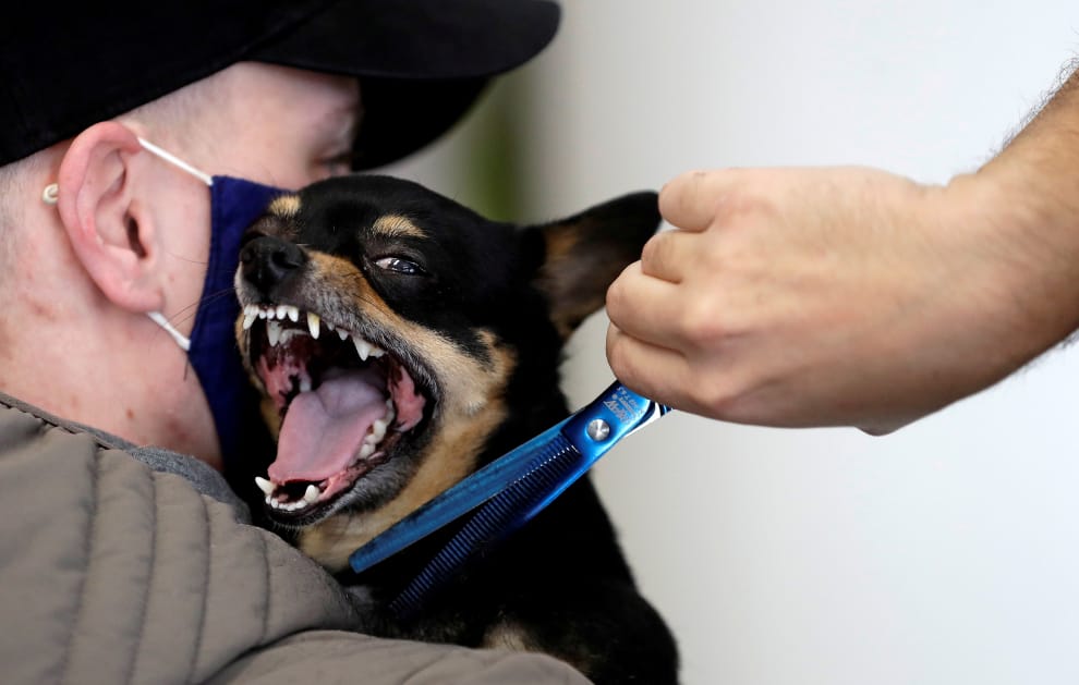 在首都布拉格,一間重新開張的寵物美容院正在用修毛服務接待他們的客人。