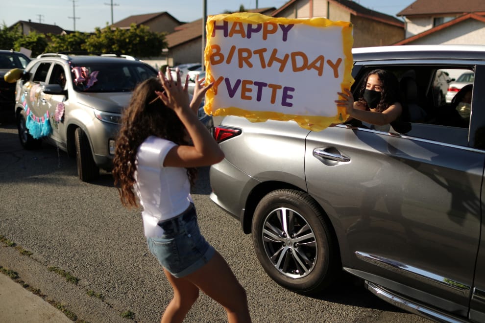 在洛杉磯近郊的皮科里韋拉(Pico Rivera),伊薇特(Yvette Torres)的朋友們替她舉辦一場「得來速生日派對」,慶祝她的 14歲生日。