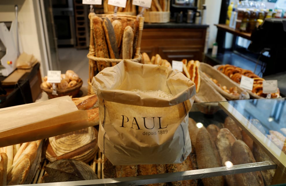 在巴黎(Paris)的保羅烘焙坊(Paul bakery),店裡的展示櫃上擺了一袋麵粉。在當局實施嚴格的封鎖令之下,在家沒事的民眾紛紛發展烘焙興趣,連帶麵粉也成了大家需求孔急的物資。