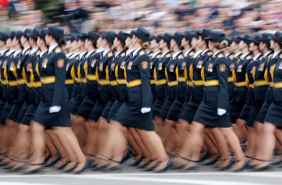 在明斯克(Minsk),軍方派出部隊參加歐戰勝利紀念日(Anniversary of VE Day)的遊行活動。