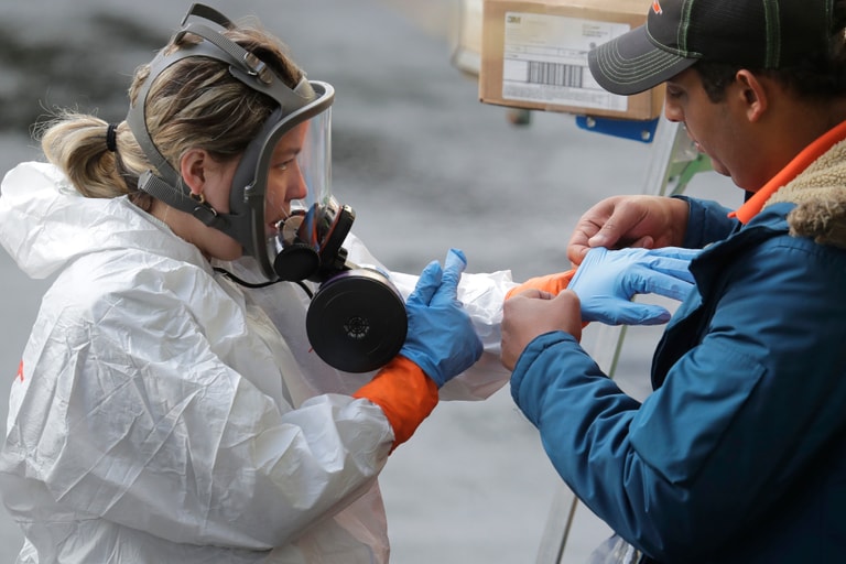 為了對抗疫情,Aftermath Services參考了他們在 2014年準備對抗伊波拉病毒的方案(該方案從來沒有派上用場過),在二月初就下訂了比平常量更多的消毒用品和個人保護裝備。