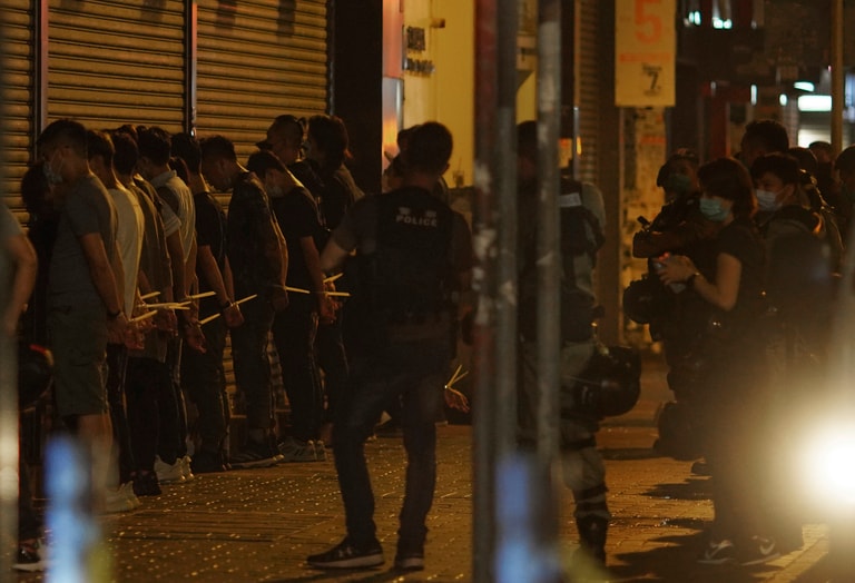 在旺角一間商場內,民眾聚集後不久,警方也帶著胡椒球彈等裝備到場驅散民眾,過程中,現場採訪的記者們也成為受害對象之一。