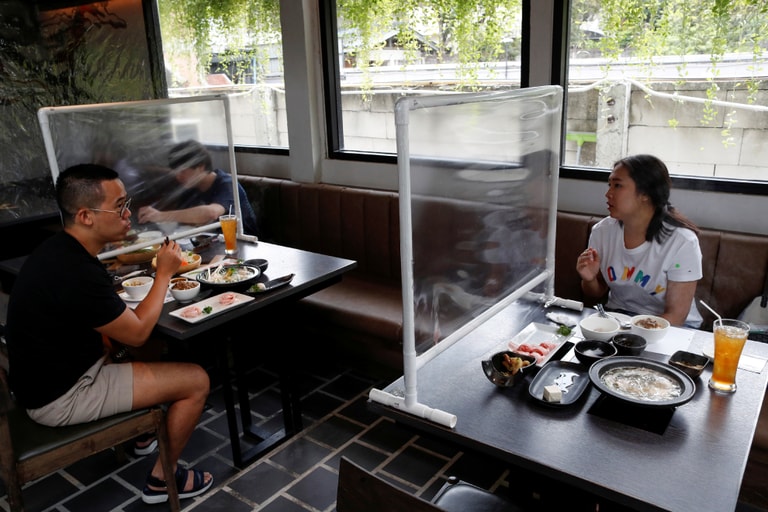位於美國的魚兒傳說餐廳則是想出完全不一樣的方法,推出「碰碰桌」幫助客人們隨時都能保持社交距離。
