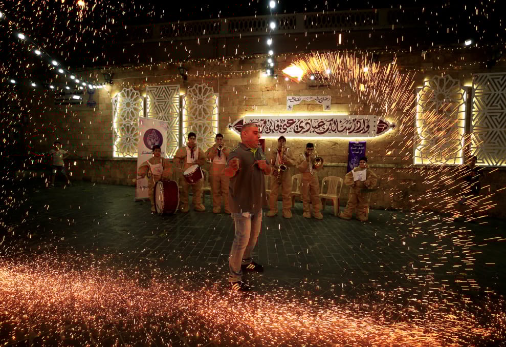 在位於地中海沿岸的賽達市(Sidon),童軍們正在演奏歡慶齋戒月(Ramadan)的音樂,一名男子也在音樂伴奏下翩翩起舞。