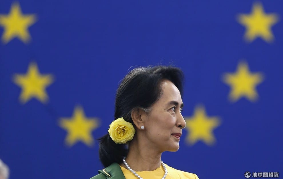 緬甸人權鬥士翁山蘇姬正在歐洲議會中接受她在1990年時無法拿到的薩哈羅夫思想自由獎(Sakharov Prize ),當年因為被緬甸軍政府軟禁無法前往領獎。