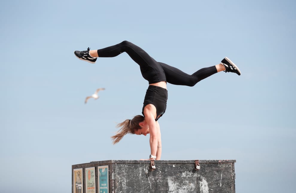 在英國東南部的布萊頓(Brighton),一名跑酷選手正在練習。