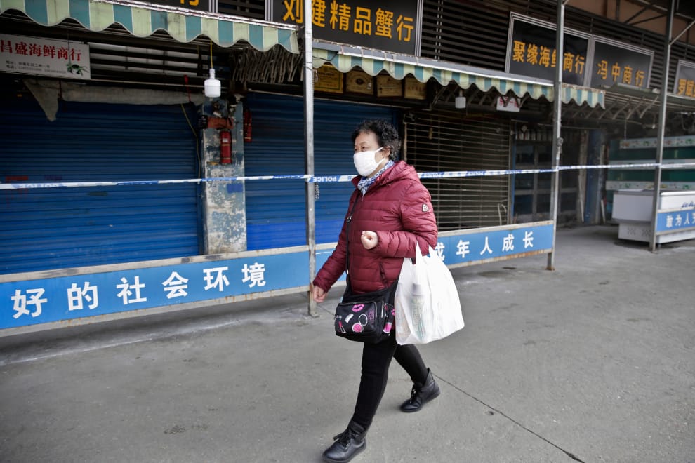 在方方的筆下,許多不太會出現在媒體上的小人物紛紛有了自己的一席之地。圖為一名經過武漢華南海鮮市場的女性,身後是一排早已拉下鐵門的攤販。