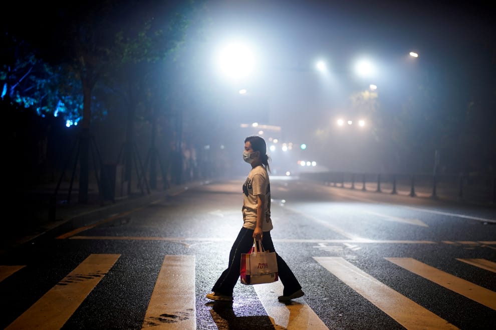 圖為一名女性走在夜晚的武漢大街上。幾周前,在中國網路上掀起一陣波濤的《武漢日記》正式在亞馬遜上開賣,讓人們更加好奇究竟這本書寫出了什麼樣的秘密,何以引來網路上排山倒海的批評?