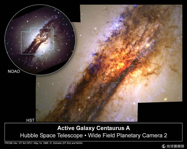 | 半人馬座A Centaurus A (NGC 5128) | 1370萬-90萬光年之間 | 由約翰赫歇爾發現,它是最靠近地球的電波源之一,也是被專業天文學家廣泛研究的活躍星系 |