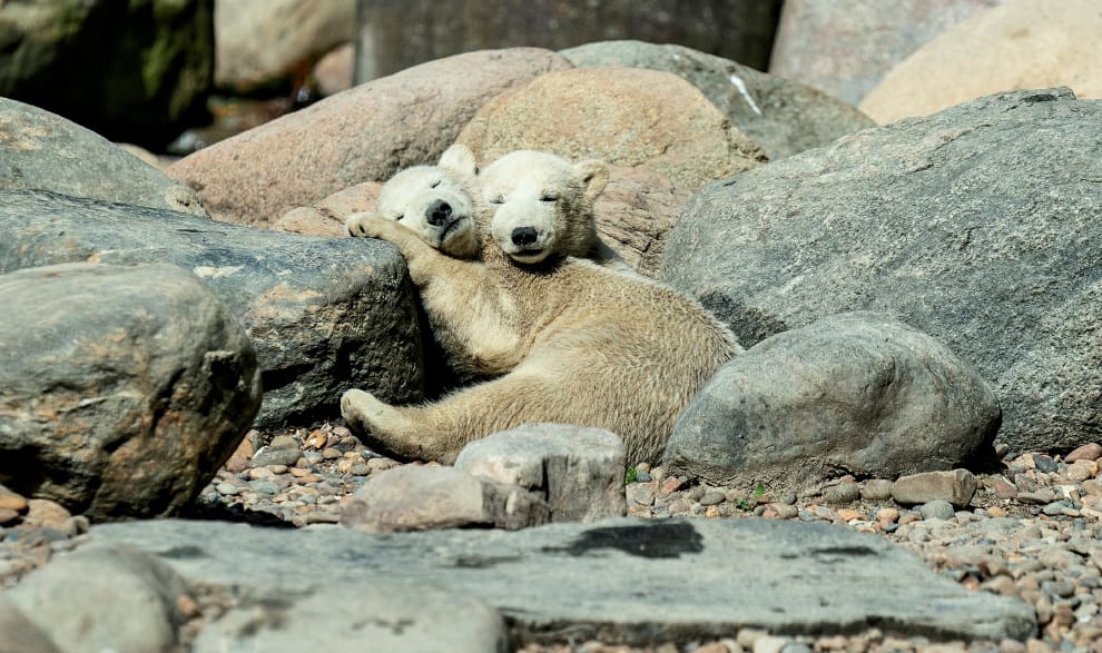 在丹麥的奧爾堡動物園(Aalborg Zoo),兩隻小北極熊相依而眠。原本因為疫情的關係暫時關閉的奧爾堡動物園,最近在疫情趨緩後重新開放,準備迎接蜂擁而至的參觀民眾。