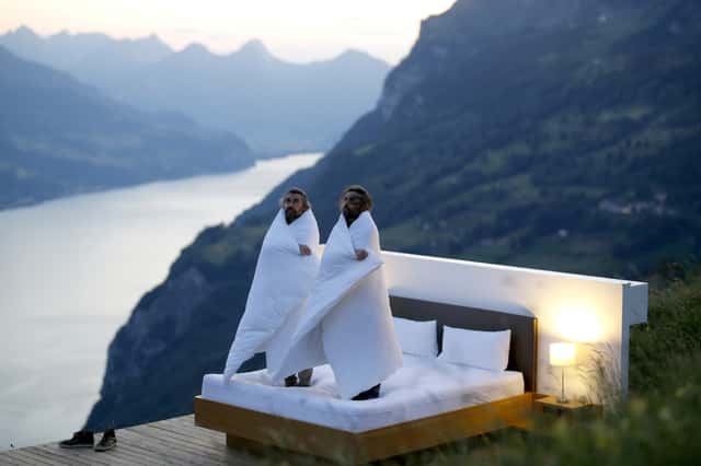 在瑞士東部聖加侖州的瓦倫施塔特小鎮(Walenstadt),瑞士藝術家雷克林兄弟檔(Frank and Patrik Riklin)向外界展示他們在阿爾卑斯山上設計的「零星級旅館」。
