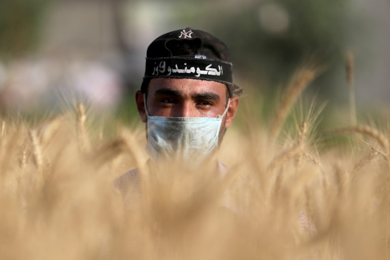 在加薩走廊(Gaza Strip),一群失業的畢業生組成自稱「突擊隊」(Commandos)的團體,試著在這段艱困的時間謀生。最近,他們到了加薩走廊南部的一處麥田協助農夫收成,換取薪資。其中一名成員在收割麥子的期間,從麥田中探出頭來。