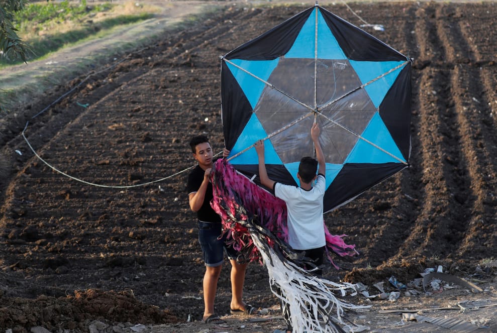 在埃及首都開羅東部的el-Marg區,一處名為El Shouna的農地上,兩名孩子正同心協力地檢查自己手做的風箏。