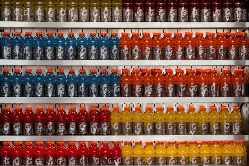 美國紐約的拉瓜地亞機場(LaGuardia Airport)舉辦一場只對媒體及受邀客戶開放的導覽,展示翻新後的B航廈。在一間商店的架子上,分門別類地展示不同口味的運動飲料開特力(Gatorade)。