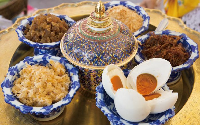 你可能會好奇,「冷」飯是有多「冷」?首先,冷飯的泰文ข้าวแช่/Khao Chae其實為「將飯浸泡在水裡」的意思。據悉從前孟族人為了讓水保持在較低的溫度,會將水儲存在陶器中、放置在陰涼處;冰塊傳入泰國後(約在拉瑪四世時期),也開始將冰塊運用在冷飯中。