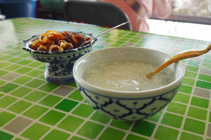 也因為這此,筆者過去這幾年在泰國一直都沒有什麼機會接觸到冷飯本尊。直到去年八月跟家人一起到佛丕府(Phetchaburi)旅遊時,才在當地的早晨市場跟它首次相見、並初嚐它的滋味!