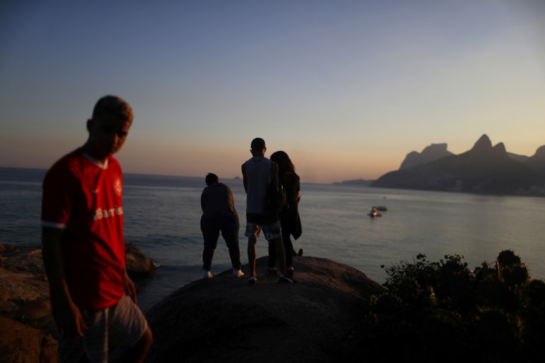 在巴西里約熱內盧(Rio de Janeiro)的Ipanema海灘上,攝影師拍下幾名遊客的身影。