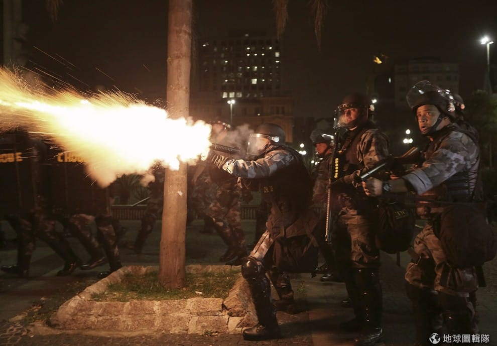 當地警方對抗議團體「黑色團體」發射催淚瓦斯,巴西當地民眾正在抗議交通費用調漲