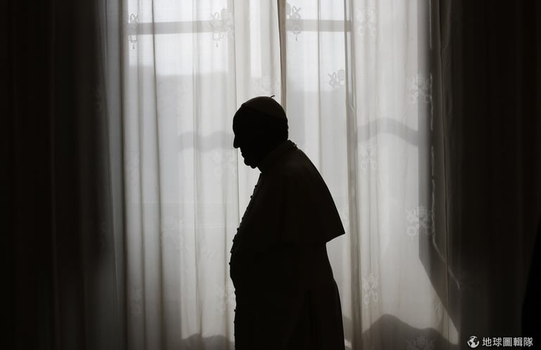 站在窗前的是教宗方濟各,他剛結束和非洲幾內亞獨裁者特奧多羅·奧比昂·恩圭馬·姆巴索戈(Teodoro Obiang Nguema Mbasogo)的會談