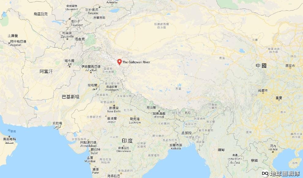 圖中紅色地標處就是這次發生衝突的加勒萬河谷,這裡位於中印邊界,雙方都主張有主權。