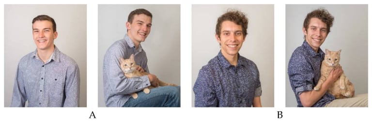 在這項實驗中,總共有 708位年屆 18-24歲的女性完成問卷。在問卷中,研究者向女性們展示兩名男性、各兩組照片,一組與貓合照,另一組則無。