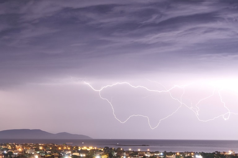 在希臘第二大島尤比亞島(Euboea),可以看到閃電劃破天際,這一刻也被攝影師的鏡頭捕捉了下來。