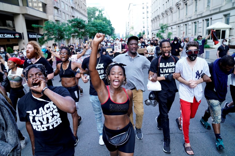 在華盛頓特區街頭,支持黑人平權運動的民眾一塊走向白宮表達訴求。