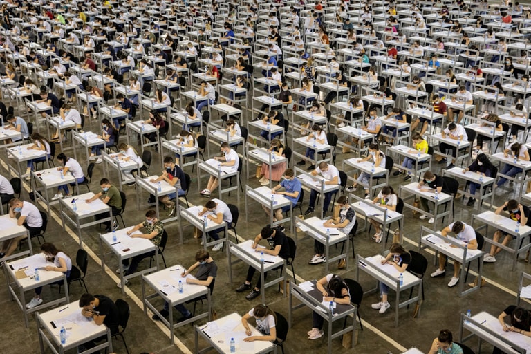 在首都貝爾格萊德(Belgrade),就算COVID-19(武漢肺炎)疫情當道,學生們依舊在會展中心內參加大學入學考試。