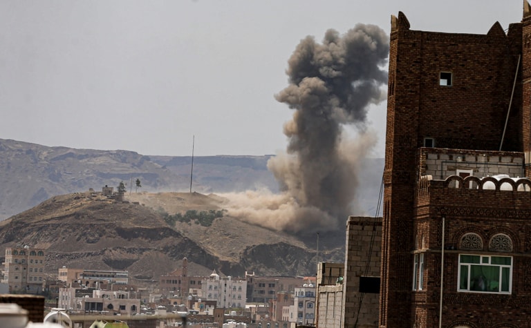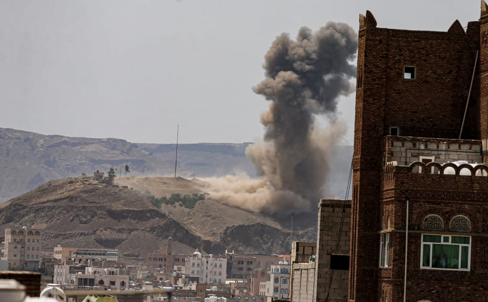在首都沙那郊外,由沙烏地阿拉伯聯軍發起的空襲激起了滾滾沙塵,他們與反政府胡西組織(Houthi)的軍事對峙在近日重啟。