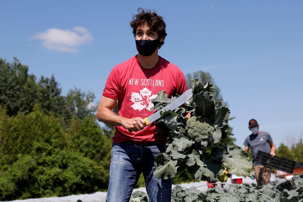在加拿大國慶日這一天,加拿大總理杜魯道(Justin Trudeau)在渥太華食物銀行農場收成青花菜。