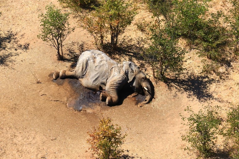 這波謎一樣的大象暴斃潮約莫始於五月。當時,波札那當局在一周之內,就在該國西北部的兩座村落附近發現 12隻大象死亡。接著,非營利野生動物保育單位無國界大象組織(Elephants Without Borders,ESW)也陸續發現大象的遺體,部分大象死亡姿勢怪異,除了常見的側臥,有的大象是直接臉部著地死亡。